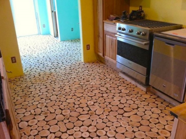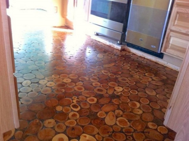 Пошаговые иллюстрации продемонстрируют невероятное преображение полов, с помощью технологии cordwood (простые диски из топливной древесины). Удивительная идея с потрясающим воплощением. А Вы бы хотели, чтобы в вашем доме были роскошные и оригинальные полы ручной работы.